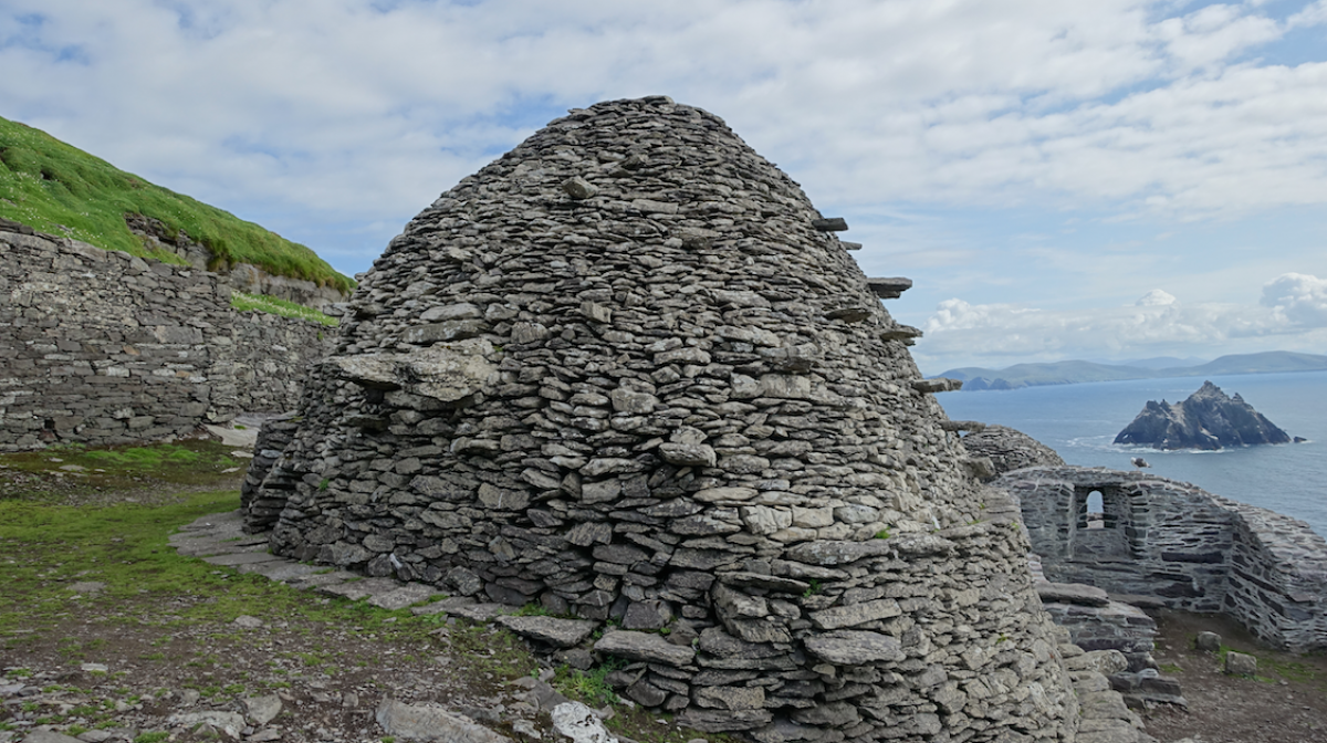 Sometime in the late 6th century, after Rome fell and the continent plunged into a barbarous age, a band of Irish brothers paddled for five hours in a small handmade boat to reach this island. They ascended the eastern slope, and near the brink, on the leeward side, they built stone huts and called the place home.