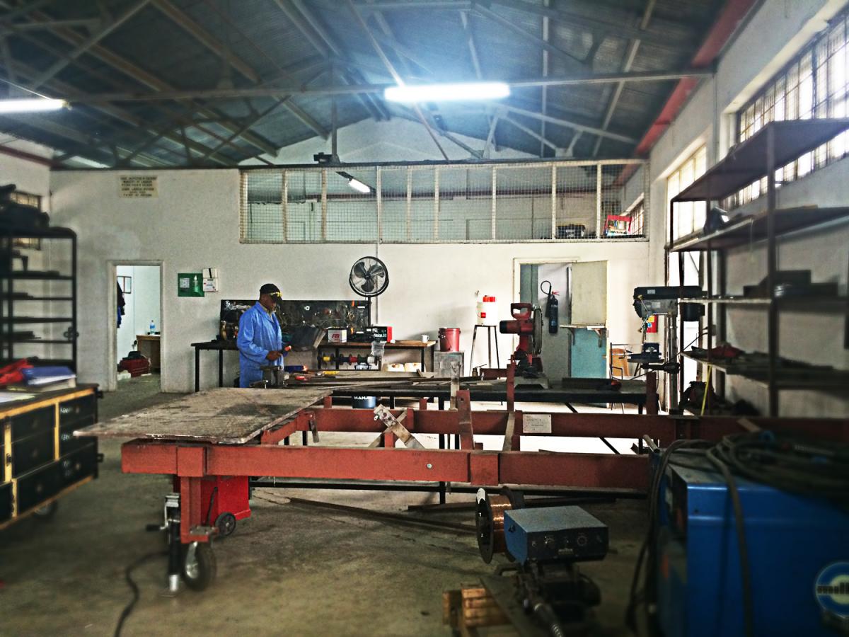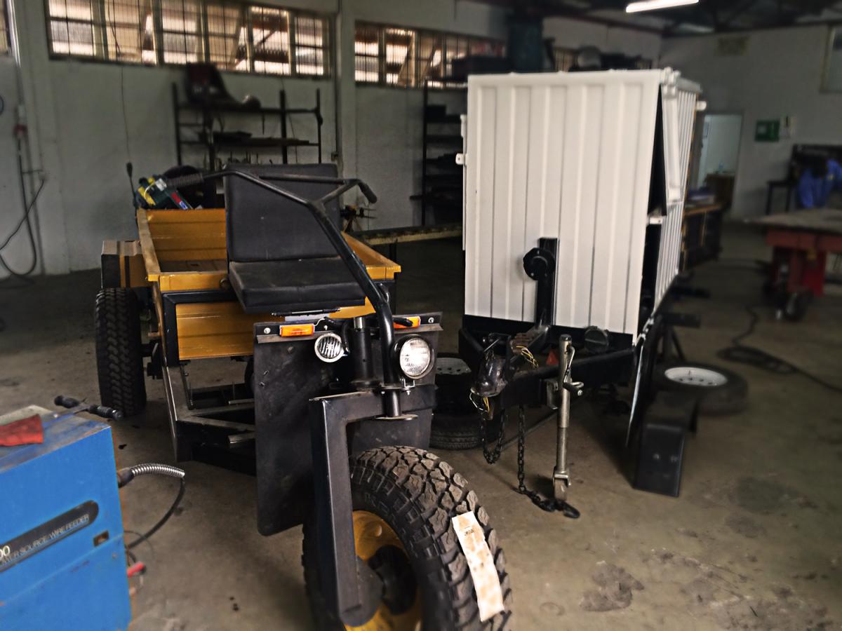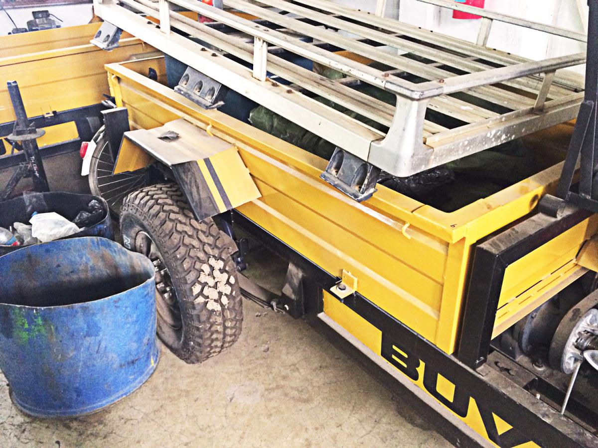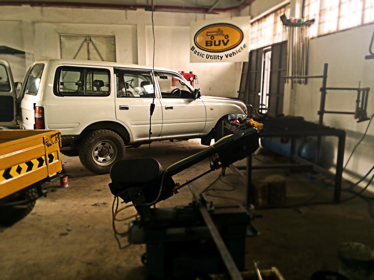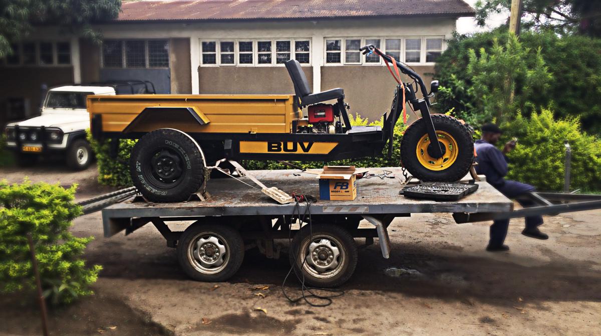 Further down the street we turn into a large complex of warehouses rented out to a variety of enterprises by SIDO (Small Industrial Development Organization), and we pull up in front of our destination: BUV Tanzania. Although it’s not yet noon, the workshop is already busy: welding sparks flying, men moving a partially-assembled utility vehicle beside a fully completed electrical set to be combined later. Outside several friendly employees work to load one of the finished products onto a trailer, the BUV (Basic Utility Vehicle) itself which looks like a hybrid between a monster truck and a tricycle.