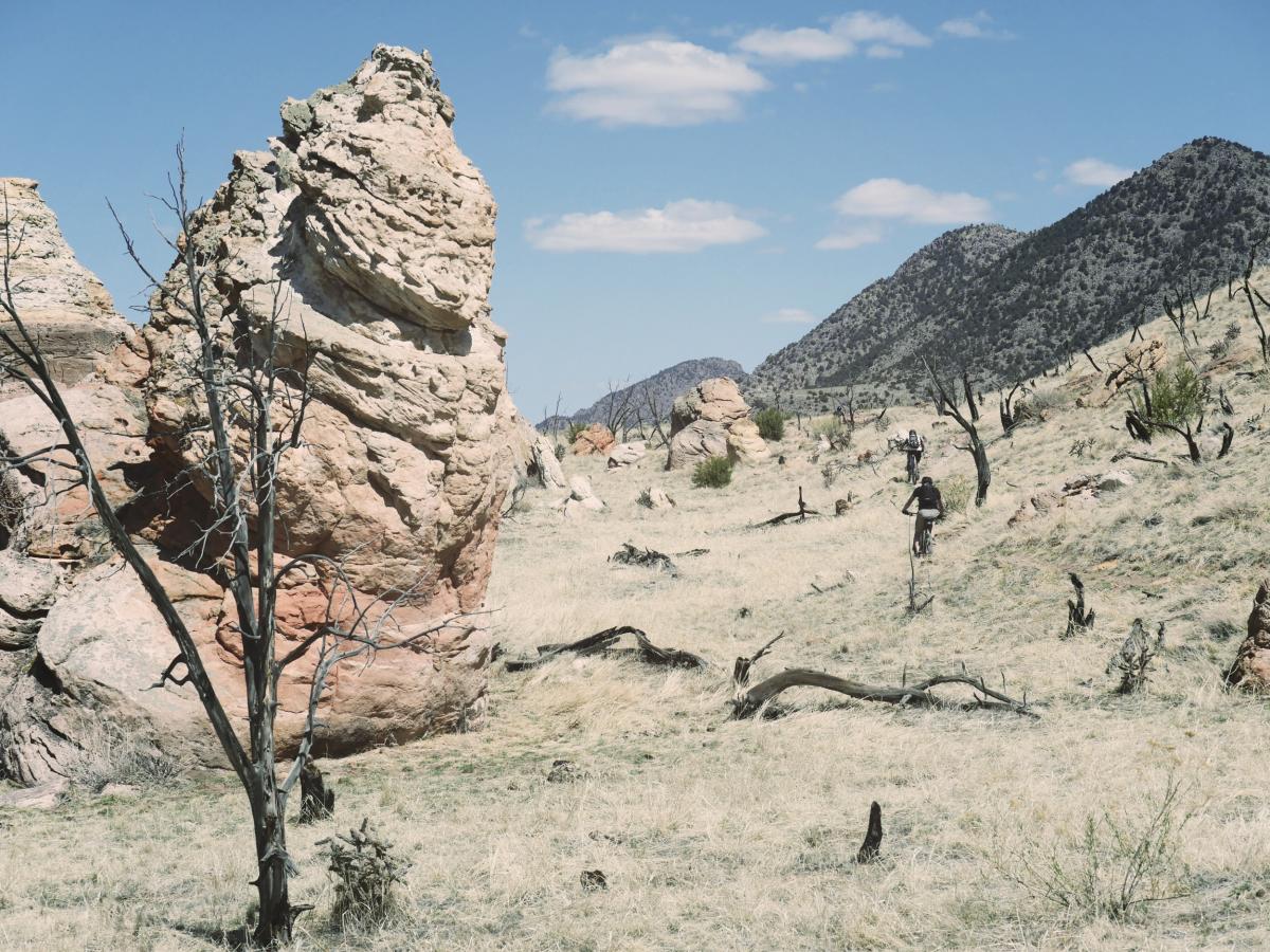Fast forward a month. It’s April, and though we’ve joked for weeks of all the fun and interesting things we can do (like spend it all on beer and cigars or take up bait fishing) no one’s done anything exceptional, but we have an issue coming up, we have to write about something. And so Sam and I break the rules. We say, look, if we pool our $20s, we can buy two tanks of gas and some very decent pizza; and so we start googling all the cool places to mountain bike in our state (which could be its own article) before realizing that one hour south there’s a whole new area in the high desert. We borrow a bike rack. We invite a couple friends, and that explains how, one hot morning, we find ourselves ditching Jon at a gas station with his new friend and heading off into Colorado’s facsimile of Coahuila.