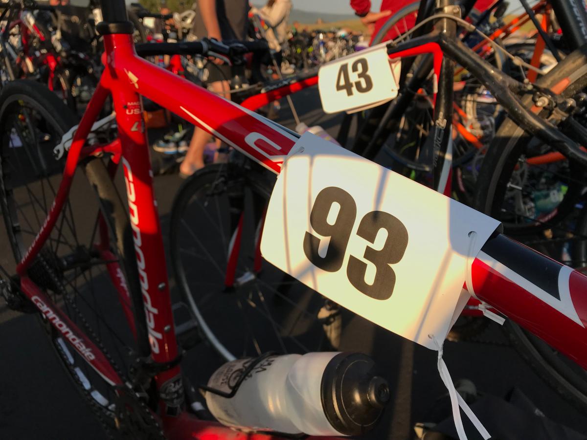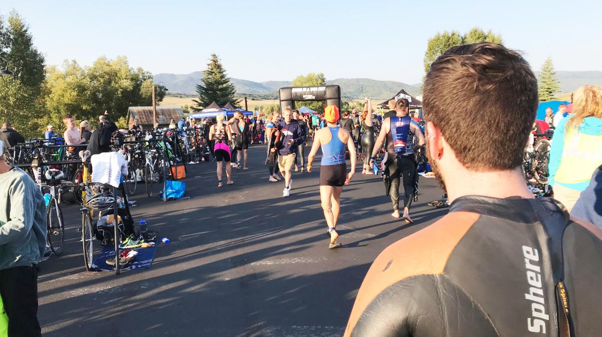My phone chirps in the dark like it has all winter. Again the message reads, “I’m out front when you’re ready,” but we are not going swimming. I load my bike, my swimming equipment, and my running gear into Sam's car and we begin the drive to Boulder, Colorado. The whole experience is honestly a little disorienting. I follow Sam in the brisk mountain air to check in at the registration station in order to get our numbers, our colored swim caps, and our tracking anklets. While I set up my equipment in the crowded transition area, I can’t help but look around at the $16,000 racing bikes next to my own borrowed bike.